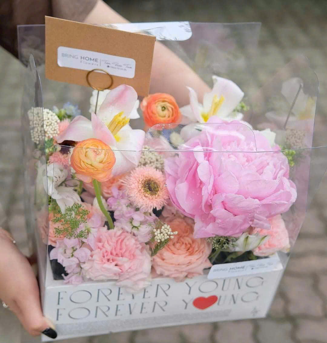 Hộp Nhựa Mika - Chữ Nhật Quai Xách Đế Giấy Love 2 Ngăn Ngày Lễ - 27x19cm - Cao 18cm