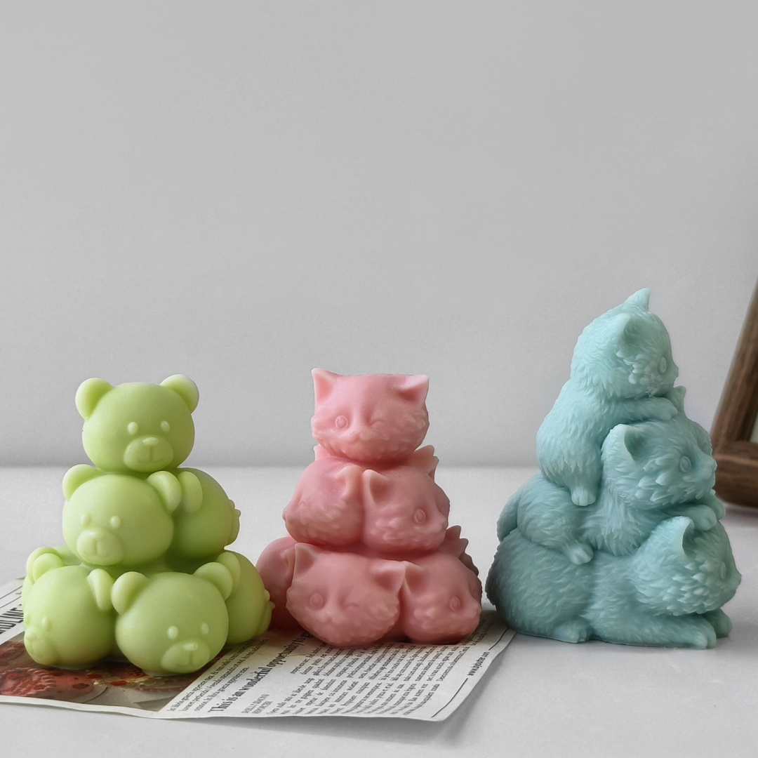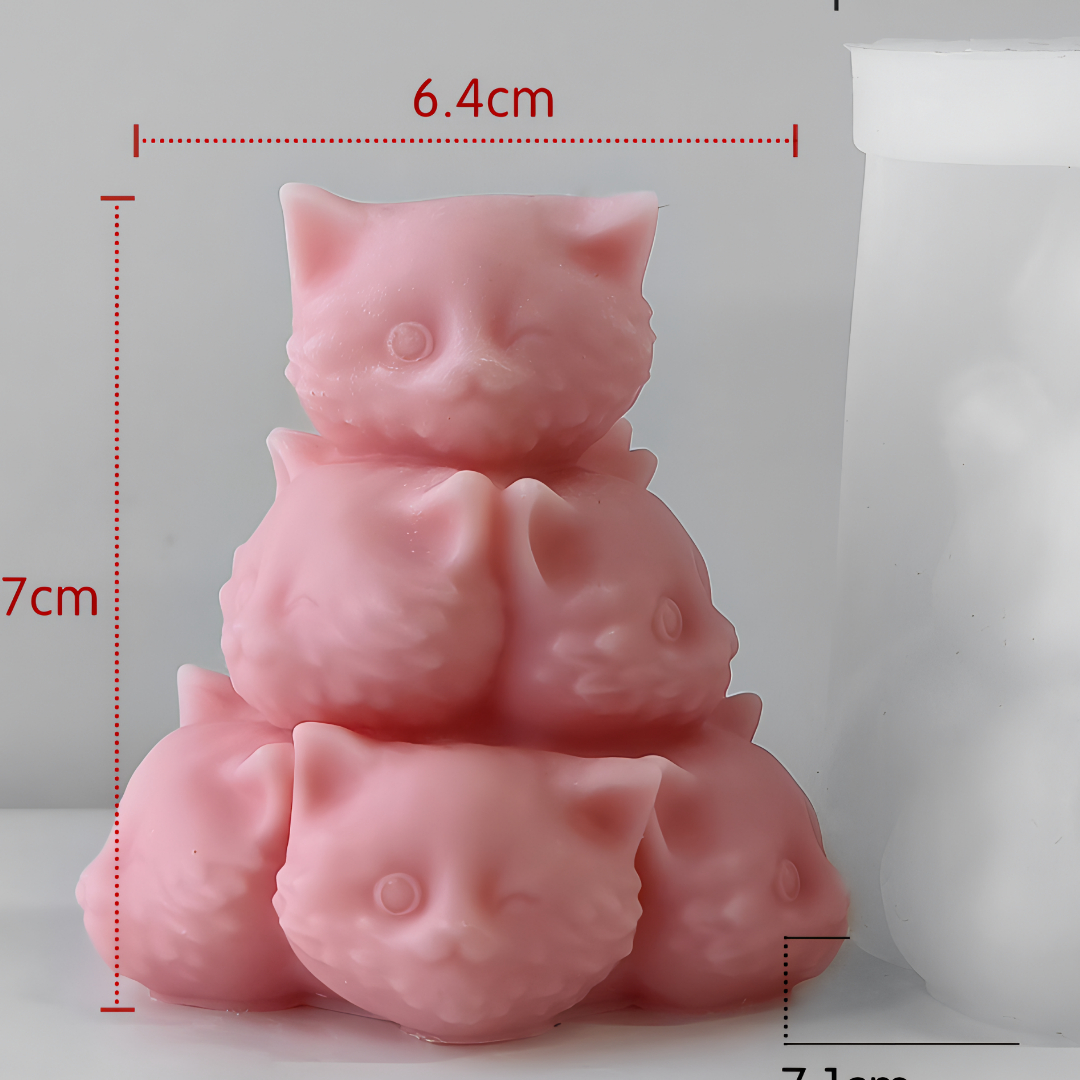 Khuôn Silicon - Động Vật - Mặt Mèo Xếp Chồng 7Cm