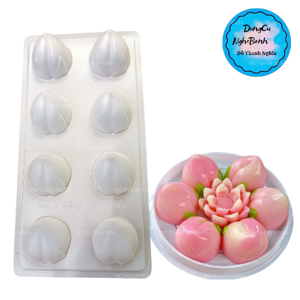 Dụng cụ làm bánh Medium Eight Peach Hình PP Jelly Khuôn Sôcôla Khuôn Peach Pastry Khuôn Chất liệu: nhựa PP thực phẩm Thông số kỹ thuật: 26X14,5cm, kích thước đơn 4,5X, cao 3,2cm Chịu nhiệt độ: -20 độ + 120 độ